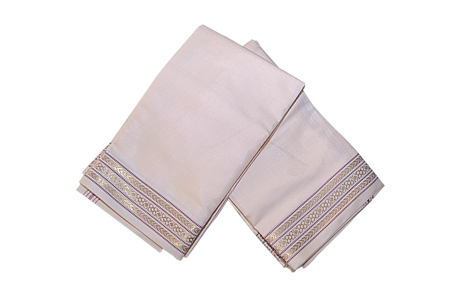 Cream Dhoti With Shawl In Pure Silk Golden Border