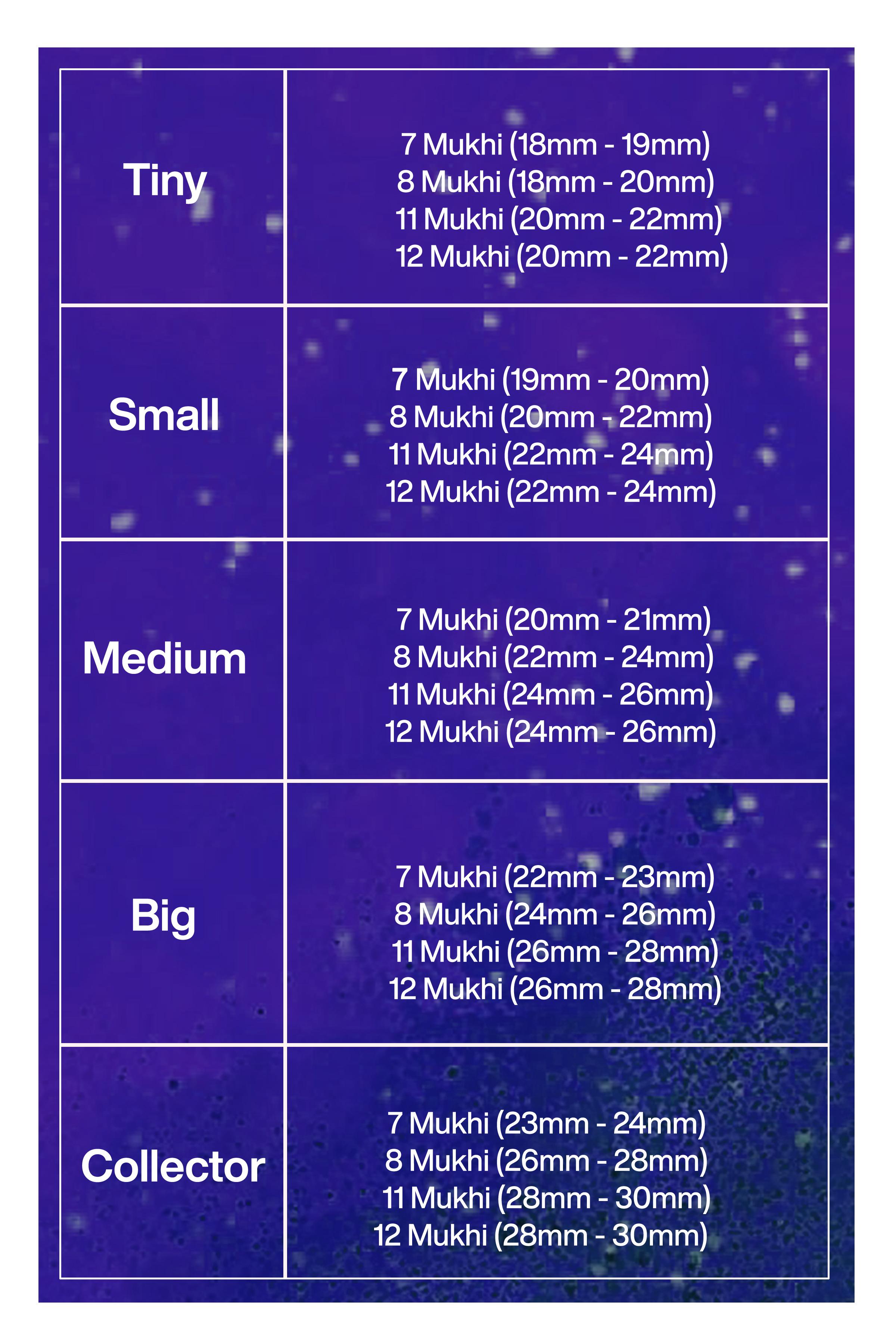 Seven mukhi rudraksha is symbol of saptamartika. It also worshiped as saptarishi. Seven face is benefial for business and service career. Good health and wealth is blessed to them who wears seven mukhi rudraksha. By wearing seven face Rudraksha man can progress in business and service and spend his life happily. It helps the wearer in overcoming financial crisis.Eight faces rudraksha have the energies for success and destroyer of evils and obstacles. Eight face is a vital instrument in strengthening ones will power and converting even an enemy into a friend. It is very useful in new work/venture to bring good fortune in work and businesses or services. It is also the demolisher of arrogance, egoism and pride when adorned.Eleven Mukhi Rudraksha is available in round or oval shape. This Rudraksha helps in controlling anger and cultivating patience. It increases self-esteem and courage of a person, and makes him brave and fearless. It increases self confidence and self-esteem of a person.Twelve mukhi Rudraksha bead is governed by Lord Vishnu. the source of vitality and the physical make up. Wearing twelve mukhi improves variety of traits in an individual, both physical and psychological which helps them to move continuously with brilliance.