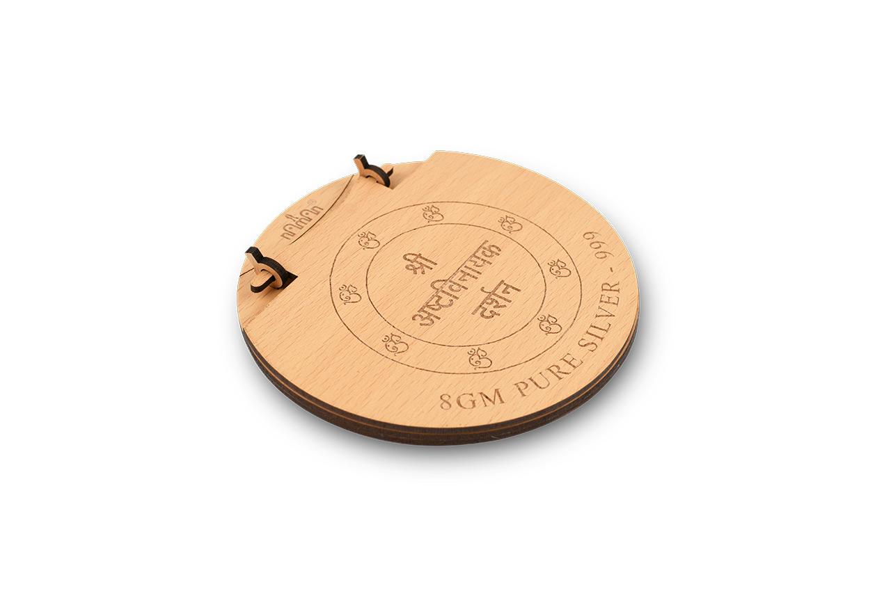 Ashtavinayaka literally means "eight Ganeshas" in Sanskrit. Ganesha is the Hindu deity of unity, prosperity, learning and removing obstacles. The term refers to eight Ganeshas. The Ashtavinayak forms of Ganesha are: Moreshwa, Siddhivinayak, Ballaleshwar, Varadavinayak, Chintamani, Girijatmaj, Vighnahar, Mahaganapati. The 8 original idols of Lord Ganesha in the state of Maharashtra, are called Swayambhu effigies, or the self-existent in Sanskrit. This is to indicate that no human created these murtis, they were found completely formed by nature. Pure silver coins having carved images of the eight forms of Lord Ganesha. It is an ideal choice for your puja altar or as a desktop item. You can also gift it on religious occasions.
