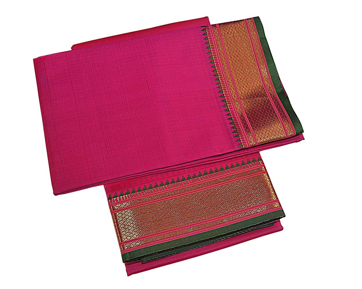 Pink Dhoti With Shawl In Pure Silk Golden Border