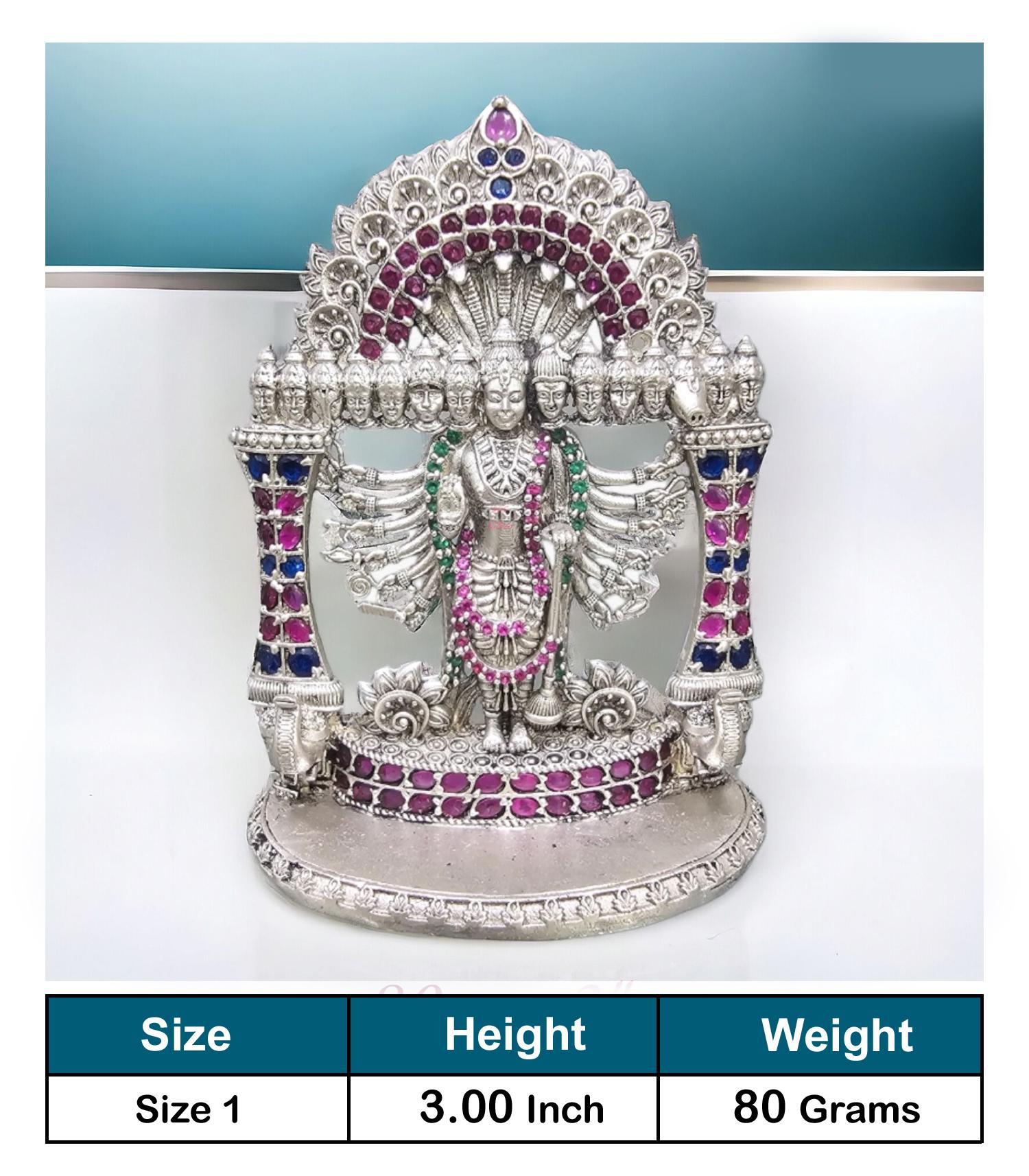 This LORD VISHNU DASHAVTAR IDOL SILVER is a perfect choice for adding a touch of spiritual beauty to your home or workplace. Featuring ten incarnations, MATSYA, KURMA, VARAHA, NARASIMHA, VAMAN, PARASHURAM, RAMA, BALARAM, BUDDHA, and KALKI, this sculpture is crafted from high-quality silver.