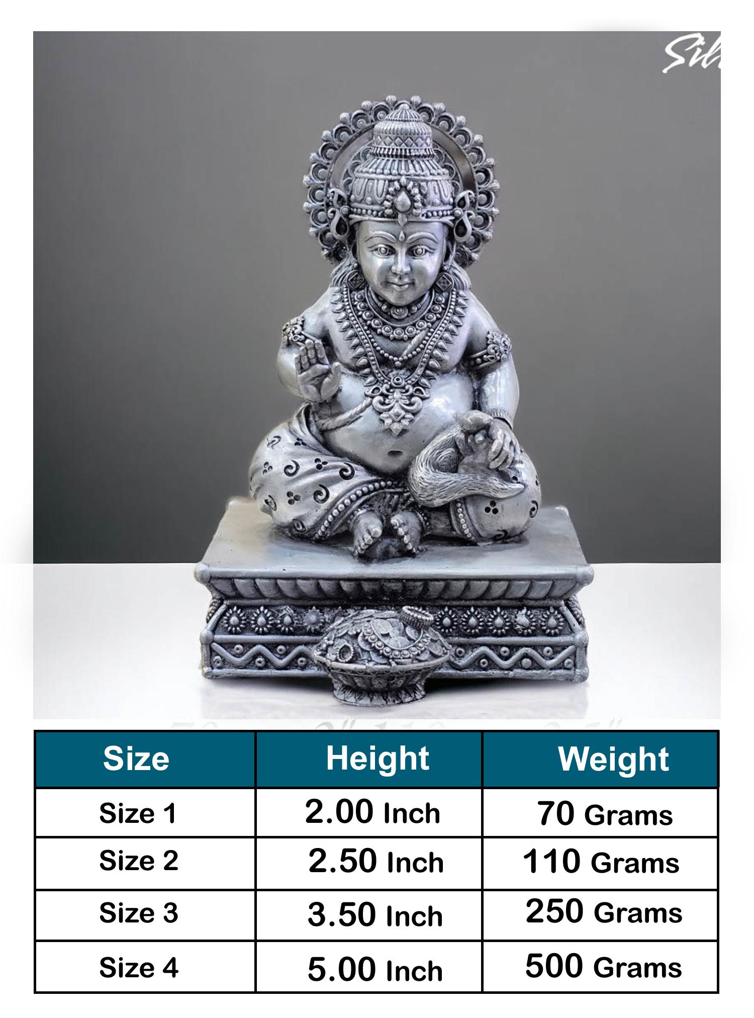 Kuber is known to have and control money in the whole world and heaven, the abode of Gods and Goddess. Kubera’s dwelling is supposed to be in Himalayas and he is facing the South direction. So it is necessary to place him in the North at home. Kubera’s good graces increase a lot when is position is front of the Money cupboard. After studying many puranas, mongoose, three water pots and the protective serpent and considering all such aspects the Kuber’s idol is created.
