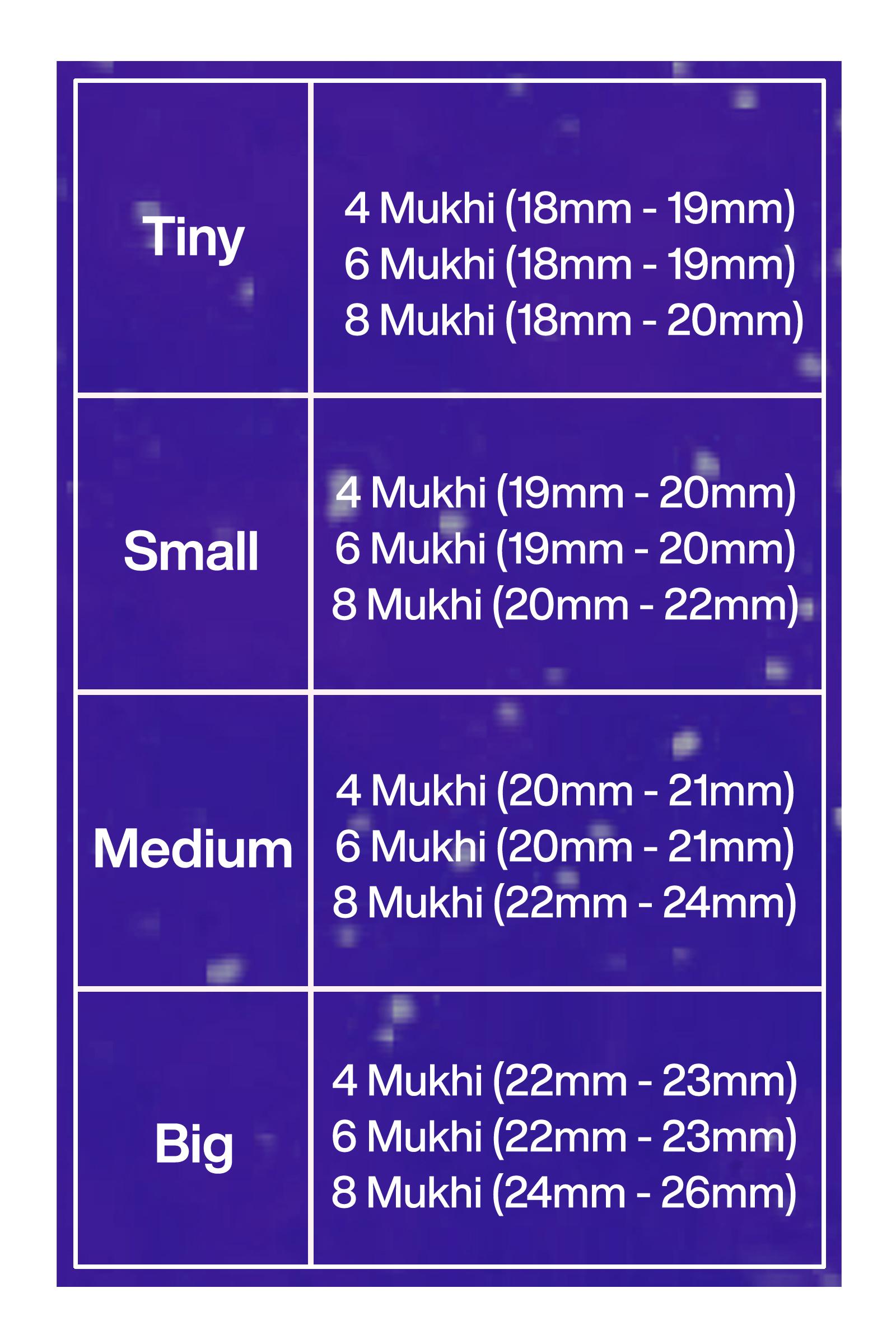 4 mukhi rudraksha is blessed by Lord Brahma, One of the god of hindu trinity and is responsible for creation. The wearer gains mental power and creativity.It increases memory power , vocal power, wit and intelligence.6 Mukhi-. Six Face rudrakshas helps to build and increses emotional charecter. These charecter like Love ,Kindness , Attraction Etc will be good and strong . It is very helpful in curing long standing diseases.8 Mukhi- Eight mukhi rudraksha is blessed by Lord Ganesha . Eight faces rudraksha have the energies for success and destroyer of evils and obstacles. . It is very useful in new work/venture to bring good fortune in work and businesses or services.