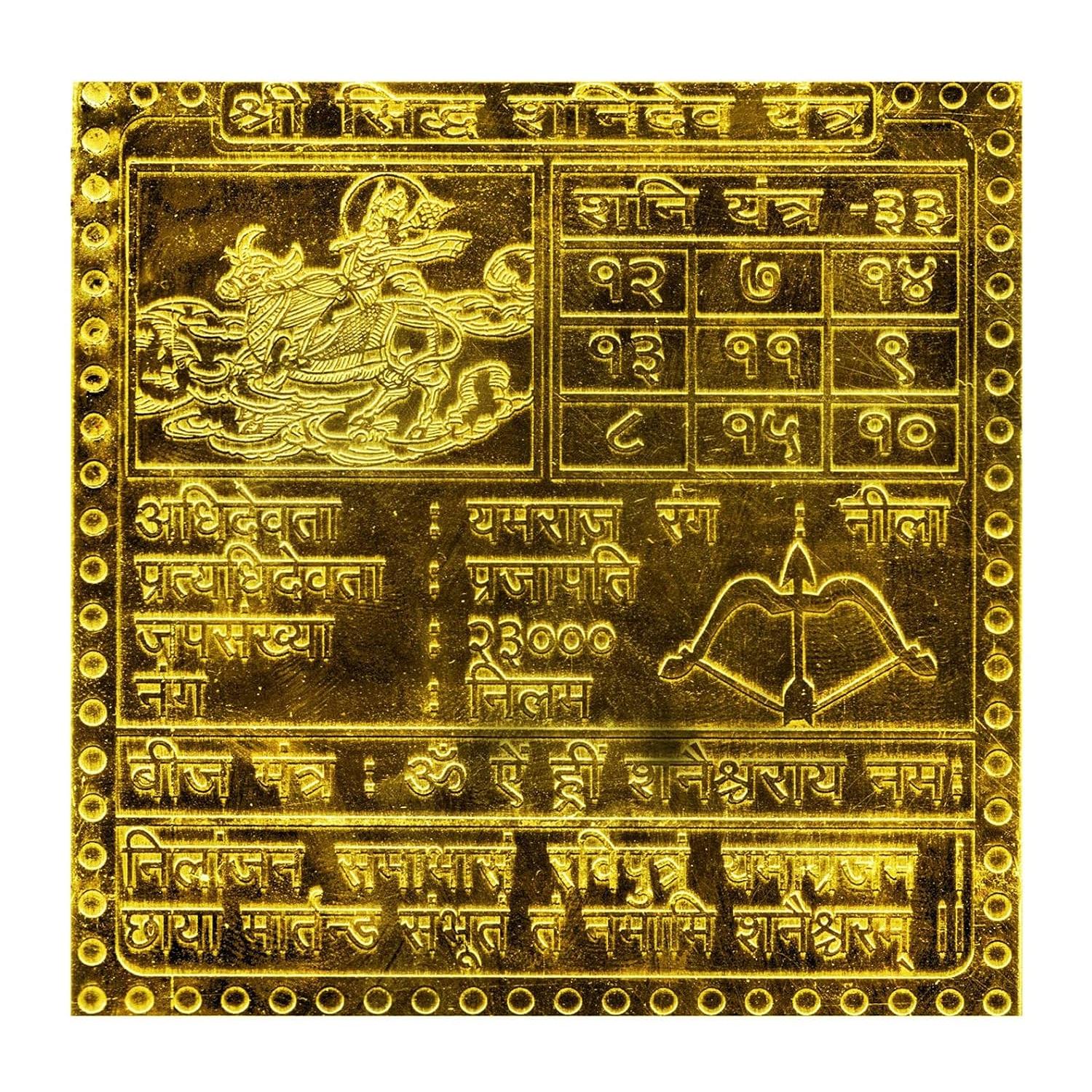 To please planet Saturn and attain his blessings, use Siddh Shani Yantra. Shani yantra benefits the worshipper with the ability to make a right decision, give them stronger financial position, business success and respectable position in their career. Moreover, the powerful shani yantra removes hardship and misfortune in your life.Shani Yantra or Saturn Yantra is linked with Lord Shani. You are then blessed by Shani maharaja. If Saturn is weak or not well positioned in your birth chart/ Kundli, having a purified, Energized and Activated Shani Yantra is a must for you. This way you are saved from misfortune, hardship in life. The business person is able to strike big ticket deals. Career oriented gets a highly responsible position in a reputed organization. The student is to have the good concentrating ability and makes notable progress by having Shani Yantra.
