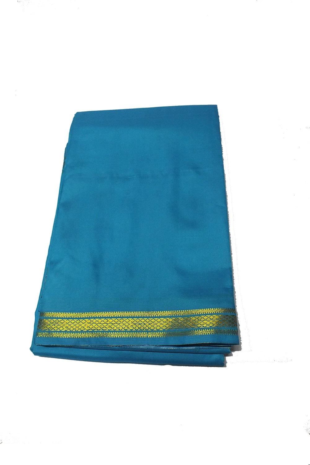 In some regions, a dhoti is tucked at five places on the waist. These five places are the symbols of the five cosmic elements, the Absolute Earth, the Absolute Water, the Absolute Fire, the Absolute Air and the Absolute Ether. The folds of a silk dhoti are tucked at the place of the navel. With tucking of the folds of a dhoti, the five vital energies solidified at the centre of navel region are activated. They are related to the five cosmic elements. The folds tucked at the place of a navel emit the frequencies associated with the Universe and the five cosmic elements in the environment as per the need. Width of Dhoti: 4 Meter [155 inches] Length of Dhoti: 1 Meter [43 inches] Shawl: 2 Meter [76 inches] Material- Silk