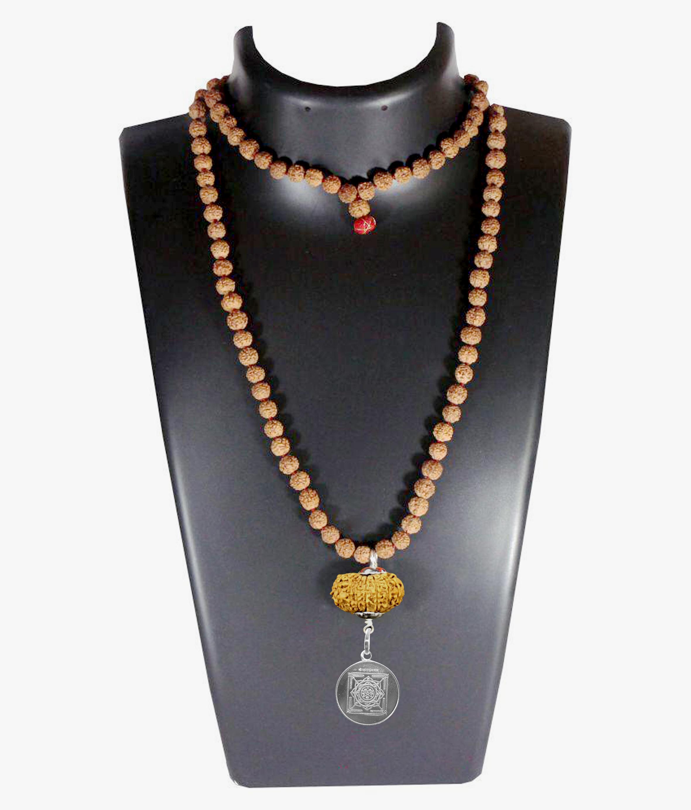 Mahamritunjaya Kavach 16 Mukhi Rudraksha With Silver Yantra Attached In Rudraksha Mala