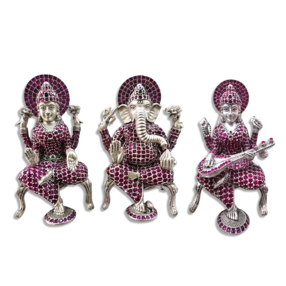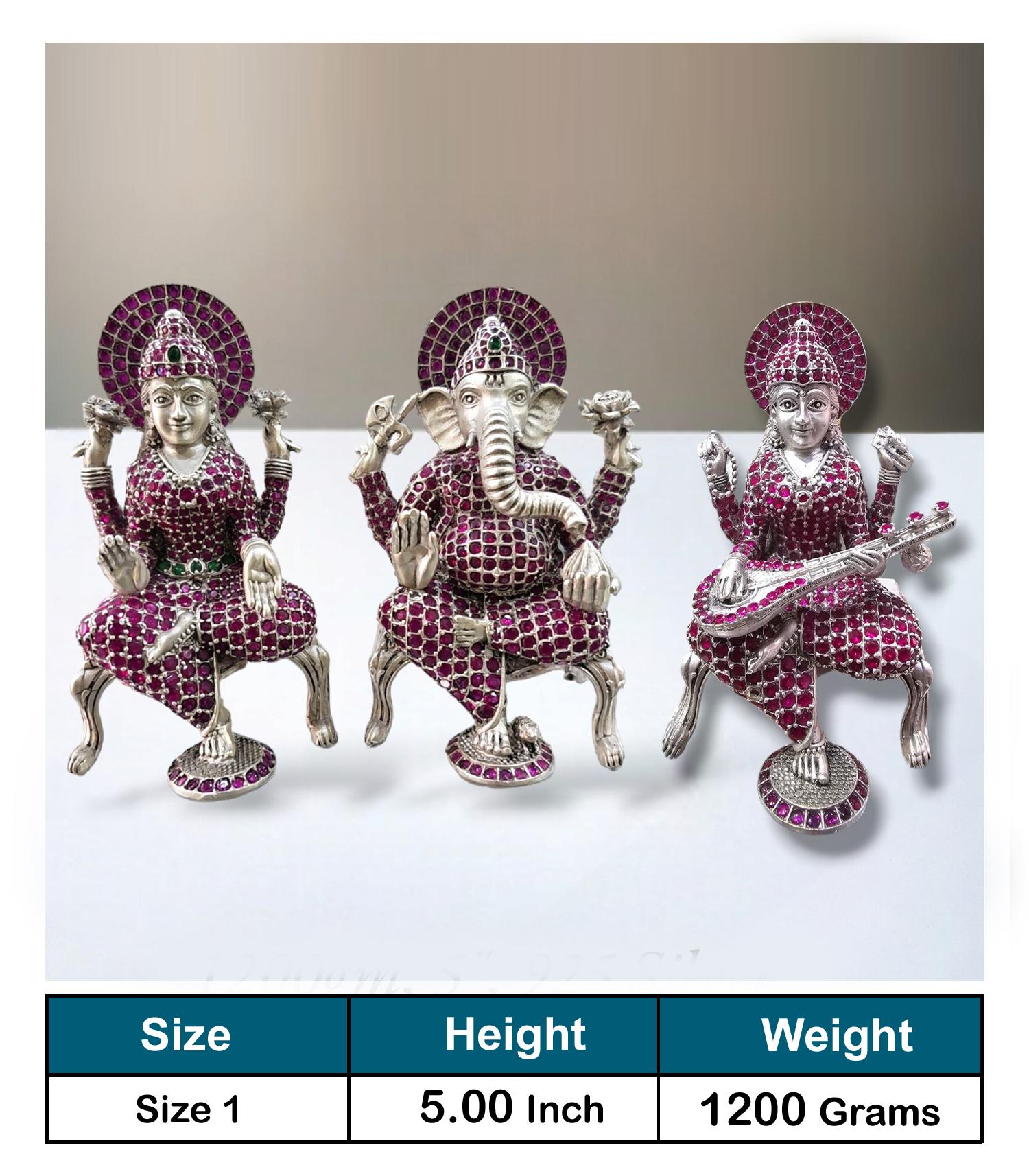 Ganesh Laxmi Saraswati Idol In Pure 925 Silver
