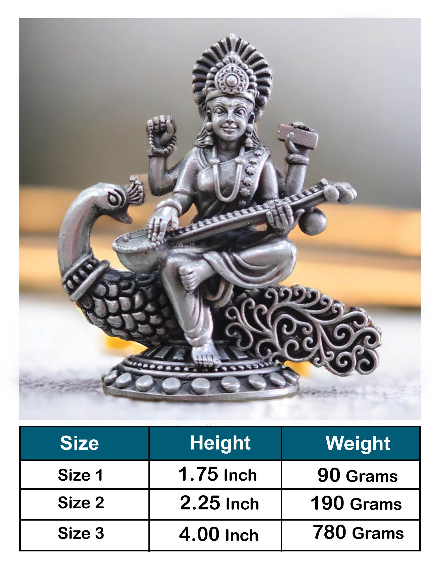 She is depicted as a beautiful woman to embody the concept of knowledge as supremely alluring.She possesses four arms, and is usually shown wearing a spotless white sari and seated on a white lotus or riding a white swan.